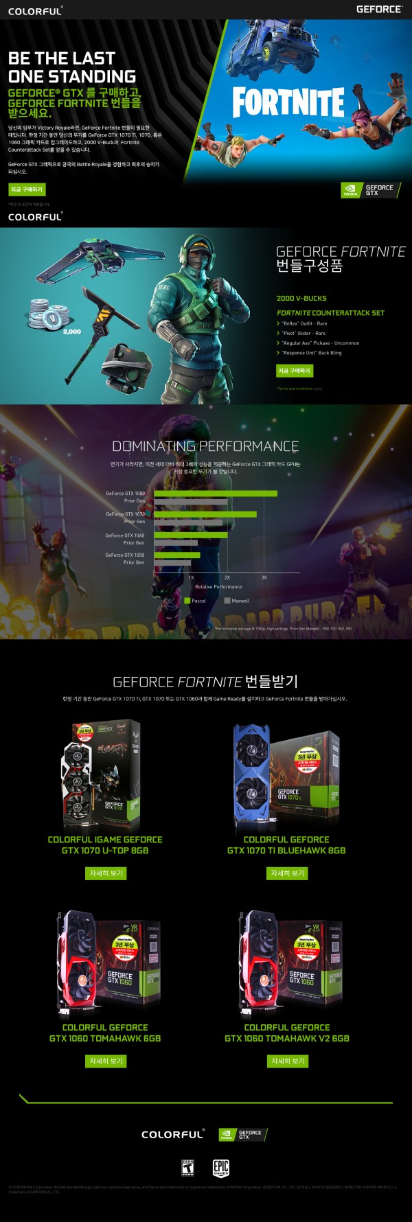 [FORTNITE] 번들 안내, 컬러풀 그래픽카드 지포스 GTX 10 제품 구매시 게임쿠폰을 드립니다