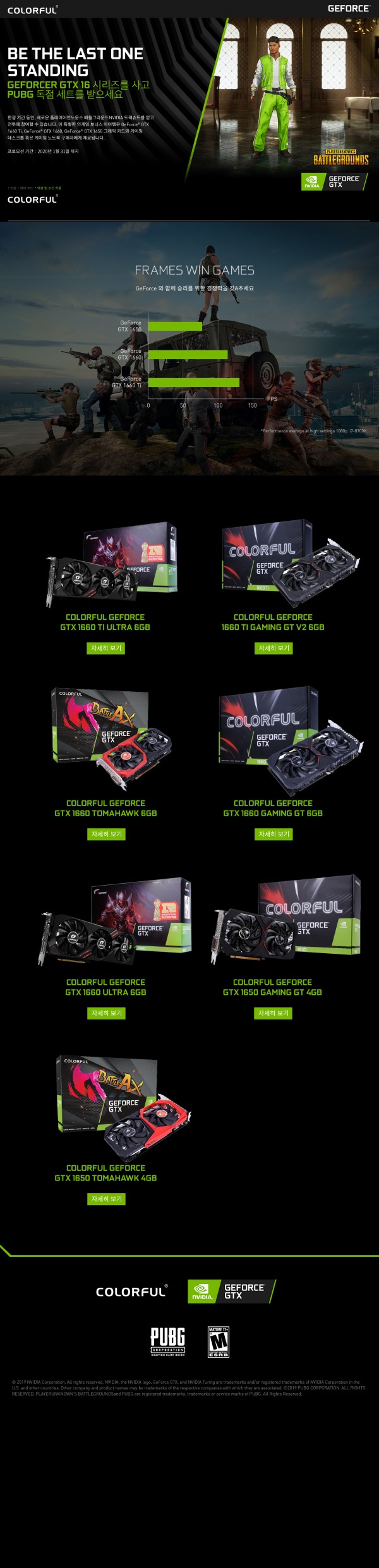 [PUBG] 번들 안내, 컬러풀 지포스 GTX 16 시리즈 제품 구매시 게임쿠폰 증정