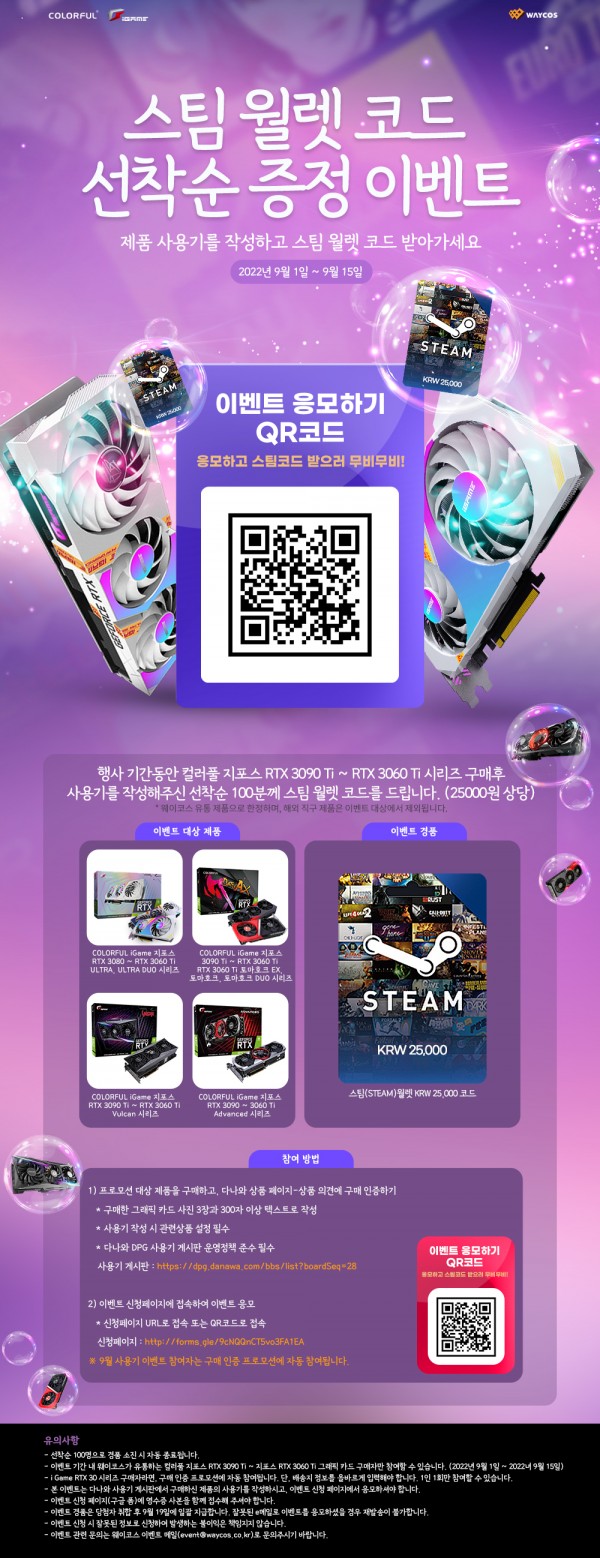 스팀(STEAM)월렛 코드 증정! 컬러풀 RTX 30 그래픽 카드 9월 사용기 이벤트!