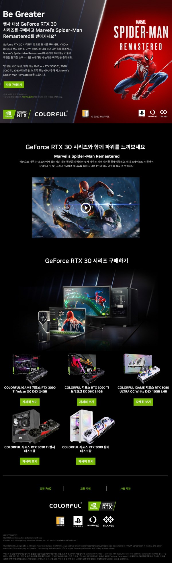 [마블's 스파이더맨 리마스터 증정] 컬러풀 'Be Greater 1차 게임 번들 프로모션' 안내