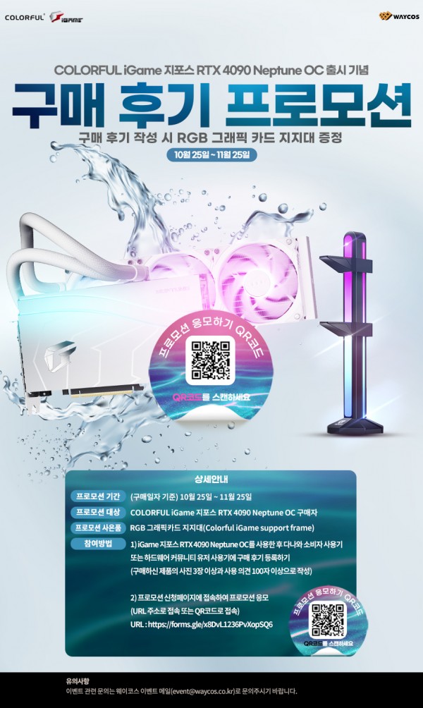 컬러풀, iGame 지포스 RTX 4090 Neptune 구매 후기 프로모션 (RGB 그래픽카드 지지대 증정)