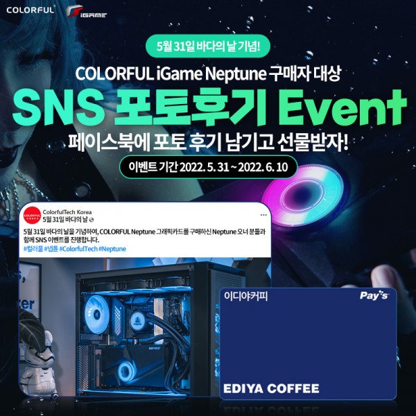 바다의 날 기념! 2022년 5월 31일부터 6월 10일까지, COLORFUL iGame 'Neptune' SNS 포토후기' 이벤트를 실시합니다.