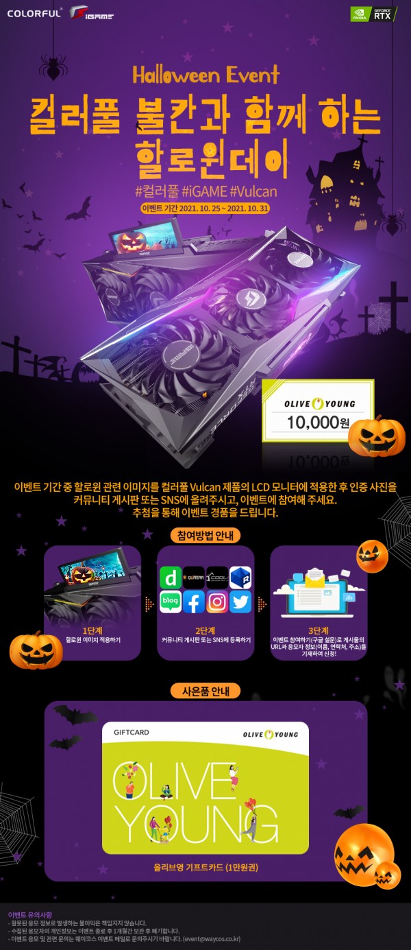 웨이코스에선 컬러풀 iGame RTX Vulcan 시리즈를 구매한 고객을 대상으로 올해 할로윈를 함께 즐기는 작은 이벤트를 준비했습니다.