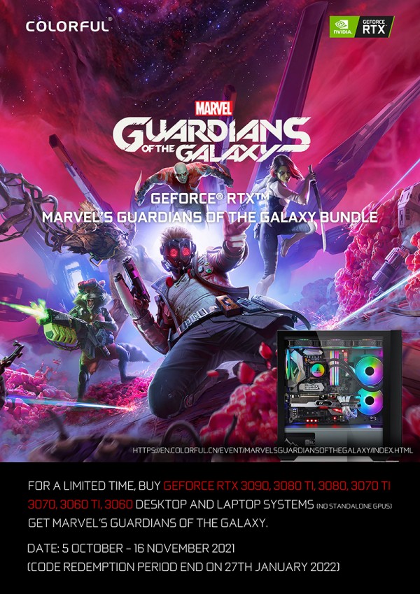 [마블의 가디언즈 오브 갤럭시] 게임 번들 안내, 컬러풀 지포스 RTX 30 탑재 데스크탑 제품 구매 시 게임 증정