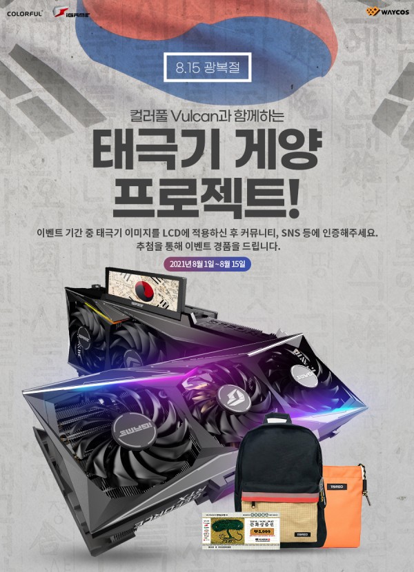 8월 1일부터 8월 15일까지 컬러풀 Vulcan과 함께하는 '태극기 게양 프로젝트!' 8월 이벤트가 진행되었습니다.