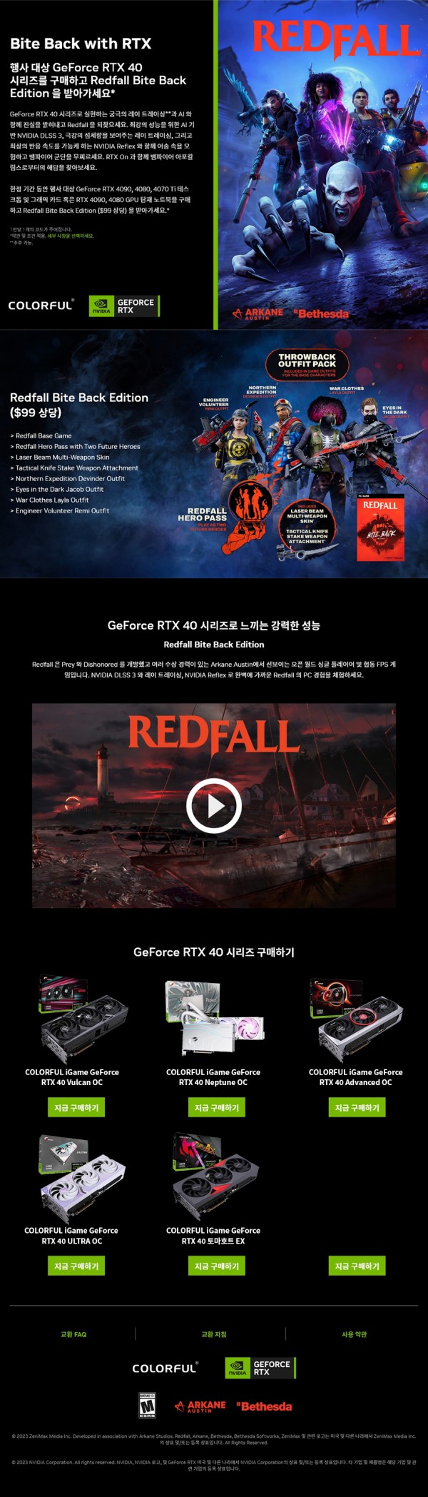 [레드폴(Redfall)] 컬러풀 'Bite Back with RTX 게임 번들 프로모션' 안내