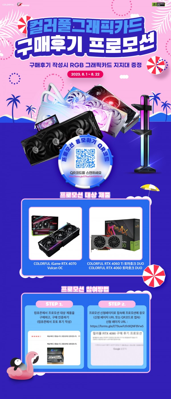 컬러풀 지포스 RTX 40 시리즈 구매 후기 프로모션! 'RGB 그래픽카드 지지대 증정'